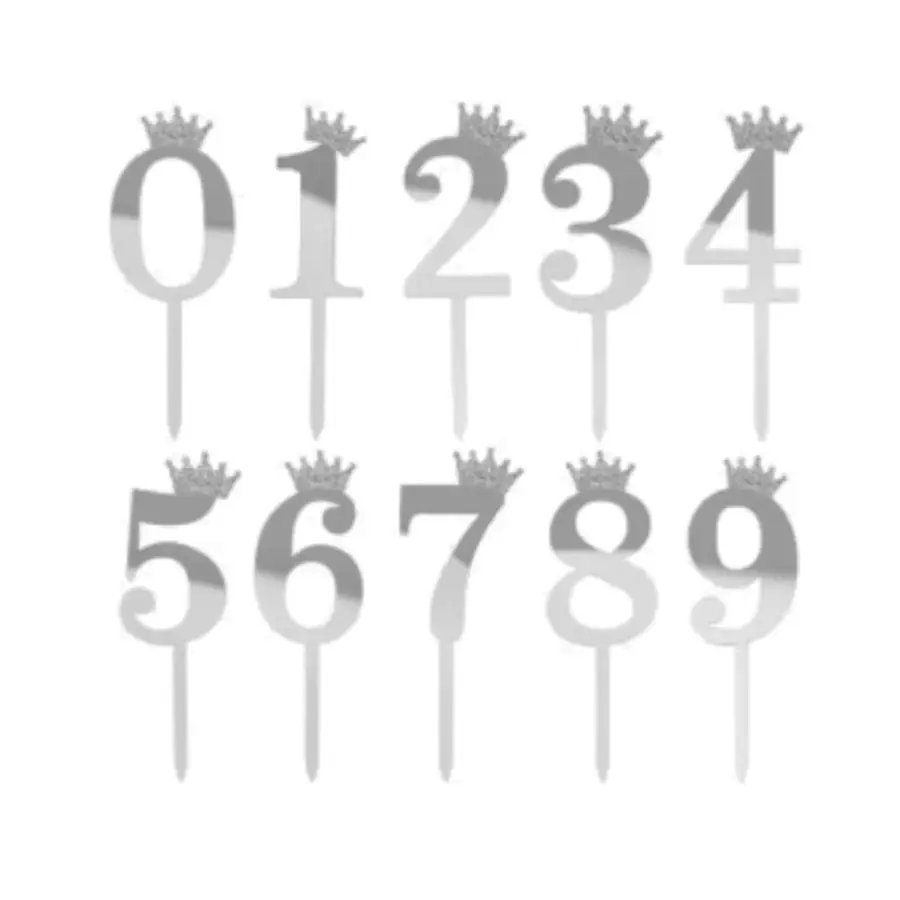 Cód 21294 - CAKE TOPPER CON CORONITA PLATA N°4 (AL- 11 CM) (L)