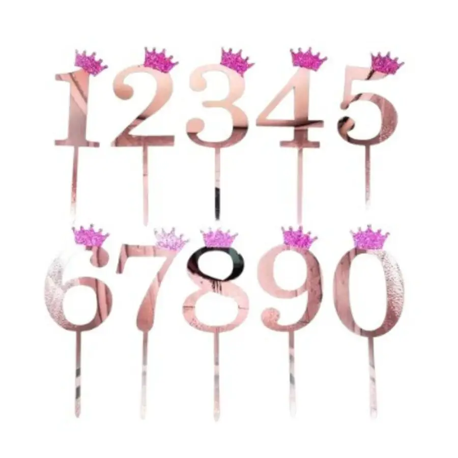 Cód 21276 - CAKE TOPPER CON CORONITA ROSA GOLD N°6 (AN- 11CM) (L)
